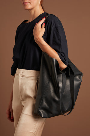 Lightweight shopper, handcrafted from certified eco-nappa leather. The all-leather interior includes a spacious zip pocket and a dedicated cellphone sleeve. For added versatility, opt for the detachable crossbody strap for hands-free convenience.