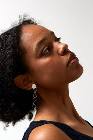 Polished disc studs with a fine strand of delicate circles. The airy design creates subtle movement and an elegant sense of lightness.