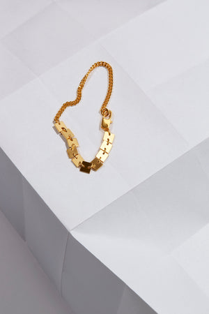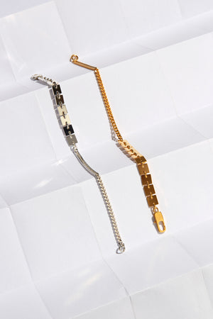 LITTLE SQUARES LINKED TOGETHER, COMBINED WITH A STRAND OF SLEEK CURB CHAIN
