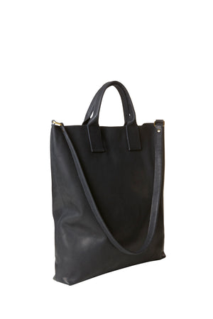Tragetasche, handgefertigt aus festem, genarbtem Öko-Leder, ungefüttert. Große Innentasche mit Reißverschluss und Handytasche aus Leder. Griffe und Schulterriemen. Oberer Verschluss: Magnetischer Schnappverschluss.