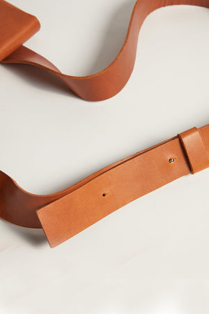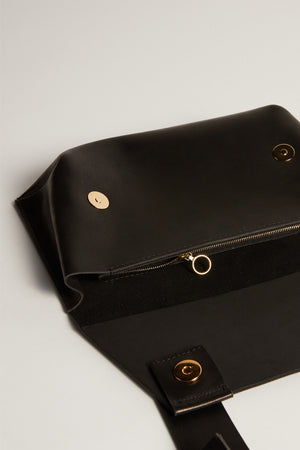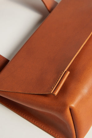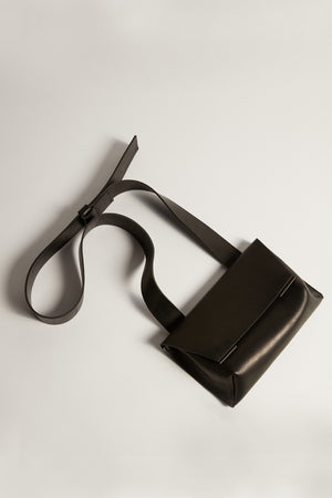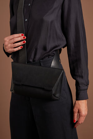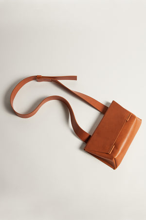 Crossbody-Tasche, handgefertigt aus festnarbigem zertifiziertem Öko-Leder. Mit verstellbarerem Schulterriemen, Magnetknöpfen und Reißverschluss-Innentasche.